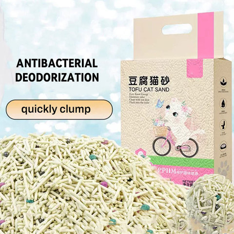 OEM ODM ขยะแมวเต้าหู้พรีเมี่ยมทำความสะอาดง่ายจากพืชทรายแมวที่เป็นก้อนแข็งแรงลาเวนเดอร์ flushable เป็นมิตรกับสิ่งแวดล้อม